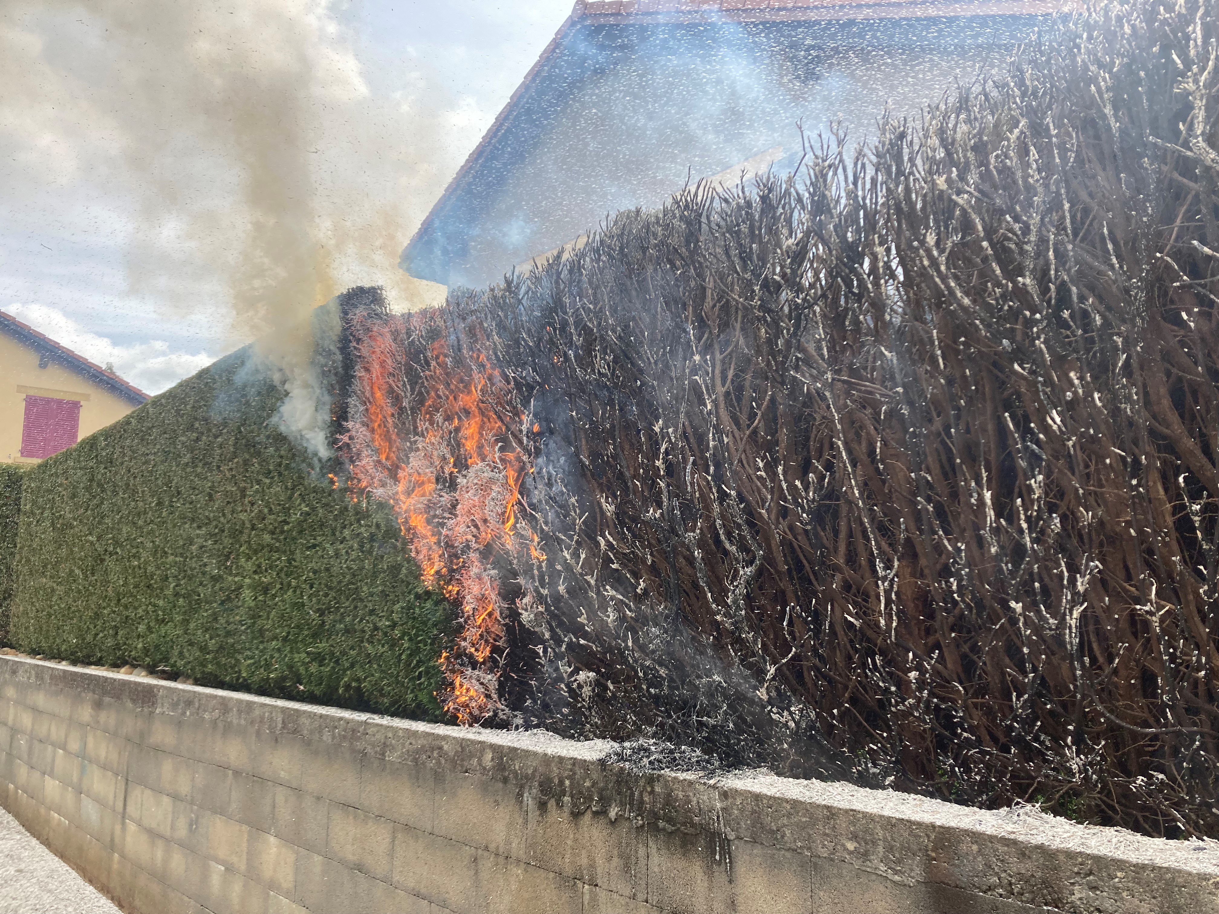 Feu (thuya dans une haie en bordure de terrasse - échelon 1)